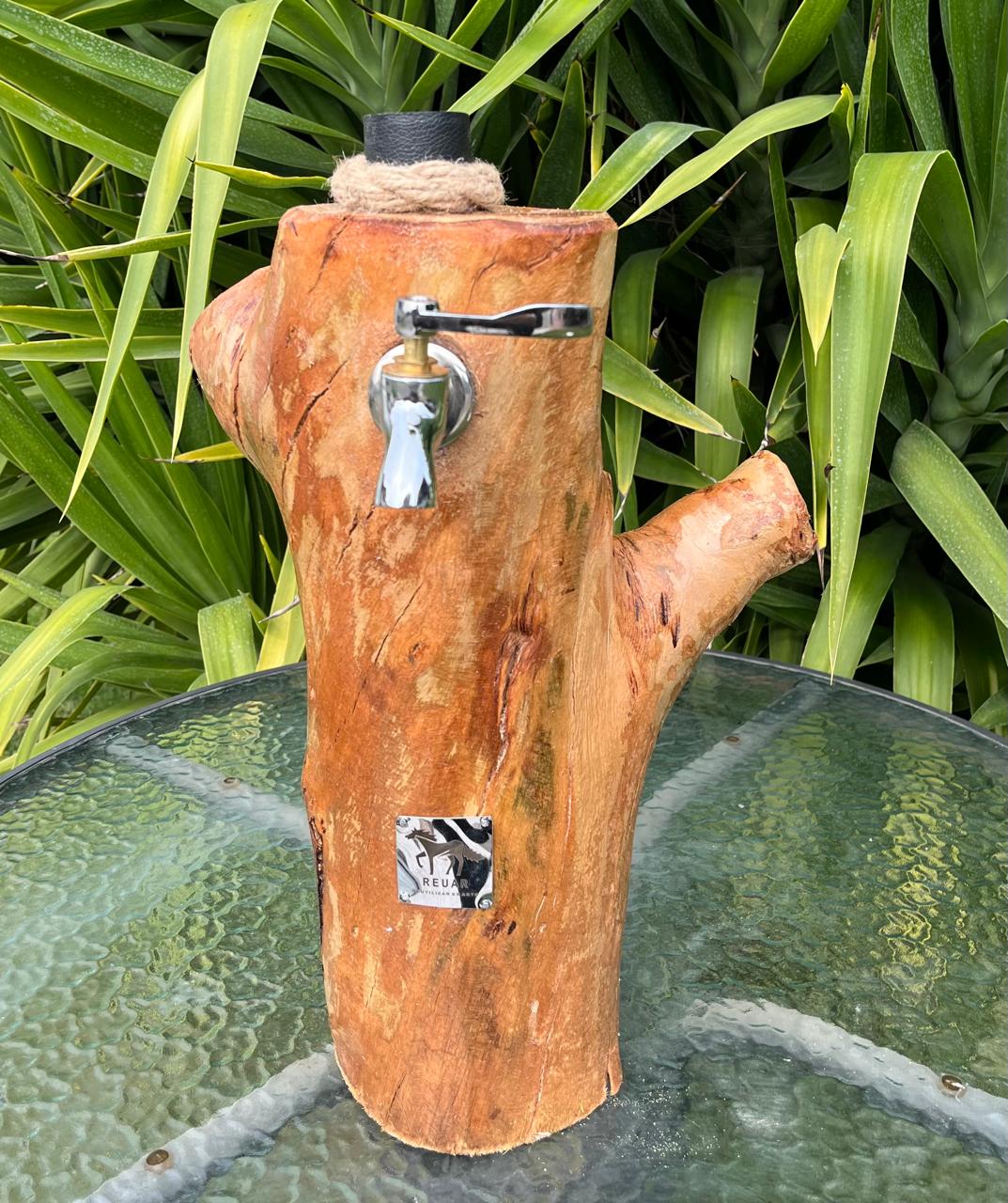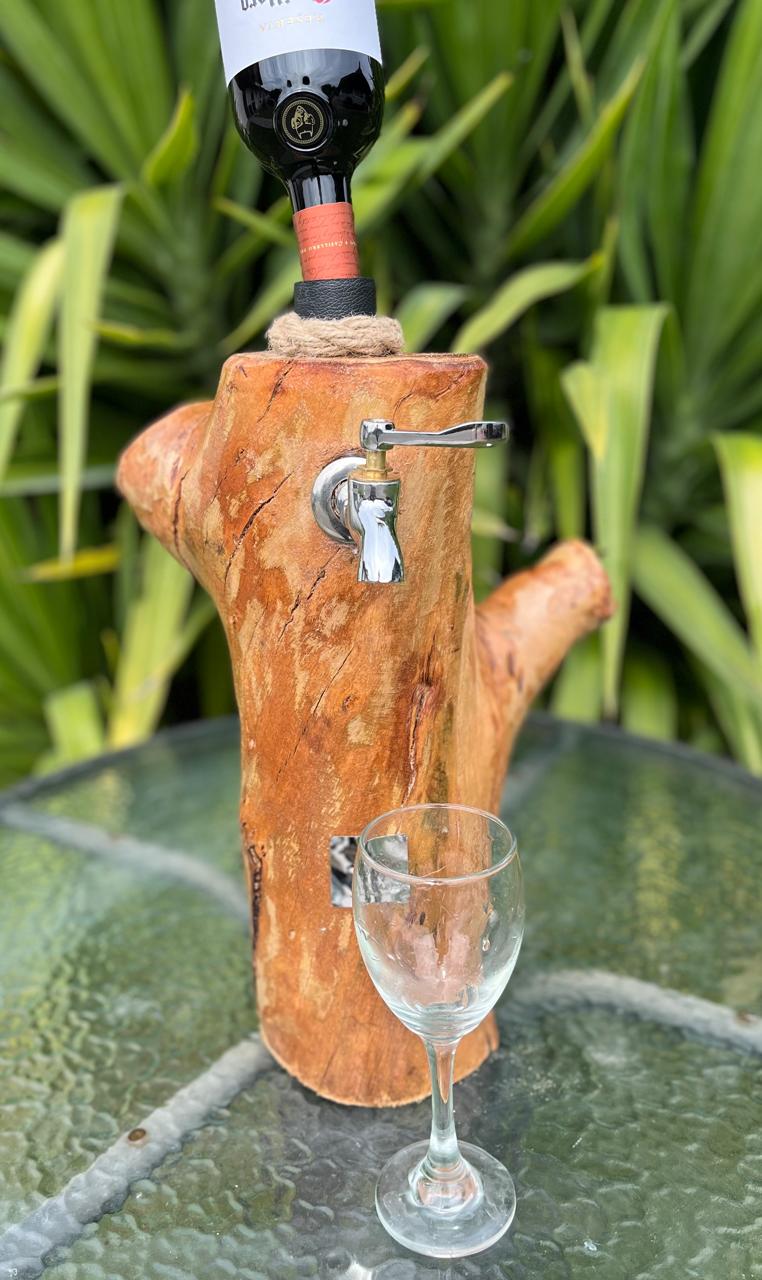 Dispensador de licor de 1 llave con terminaciones de ecocuero y cañamo.